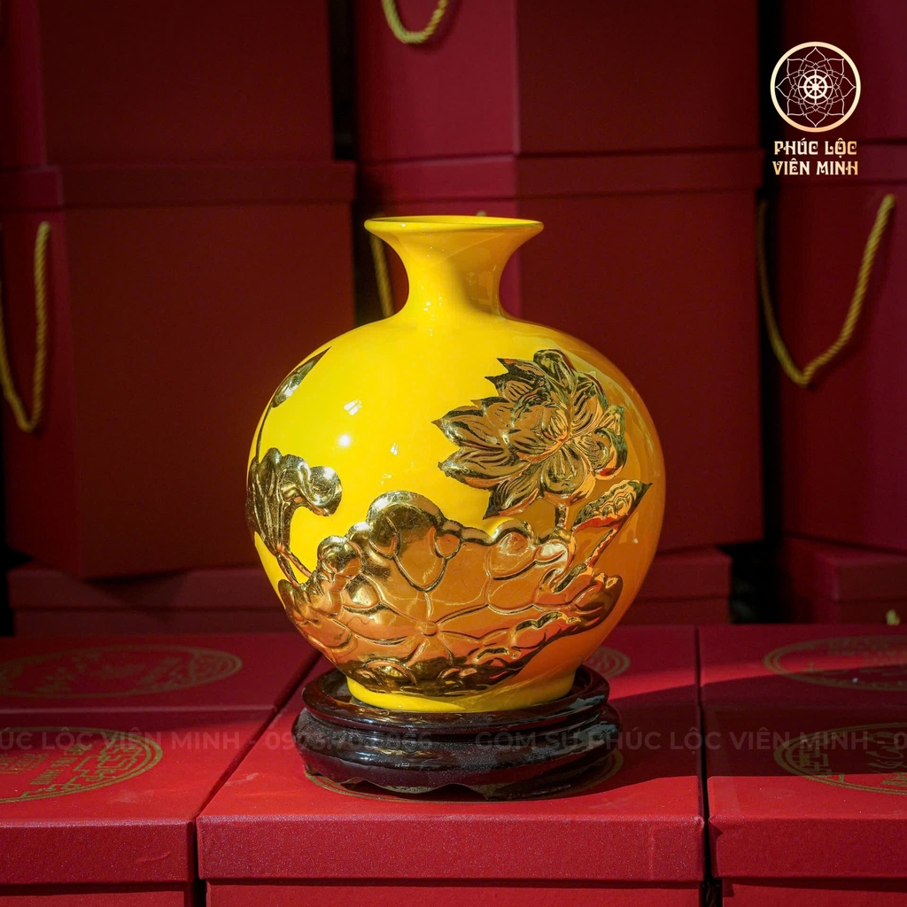 Bình Hút Lộc Men Vàng Dát Vàng Gốm Sứ Bát Tràng - Phúc Lộc Viên Minh - BHL006