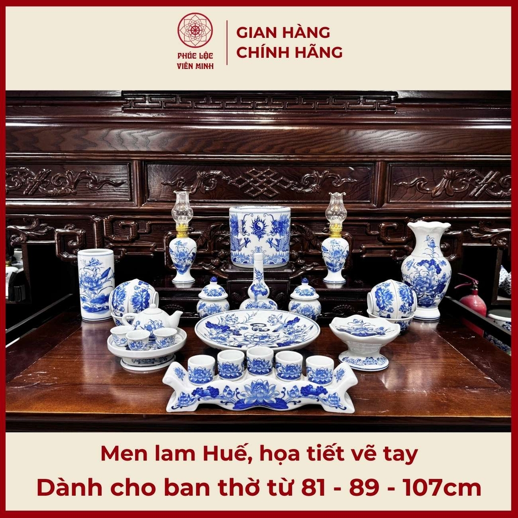 Bộ Đồ Thờ Men Lam Huế Gốm Sứ Bát Tràng - Phúc Lộc Viên Minh - PLVM453