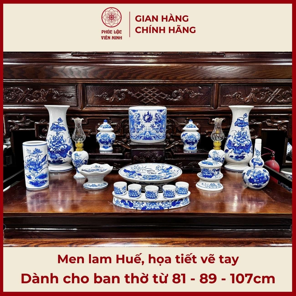 Bộ Đồ Thờ Men Lam Huế Họa Tiết Vẽ Tay Gốm Sứ Bát Tràng - Phúc Lộc Viên Minh - PLVM466
