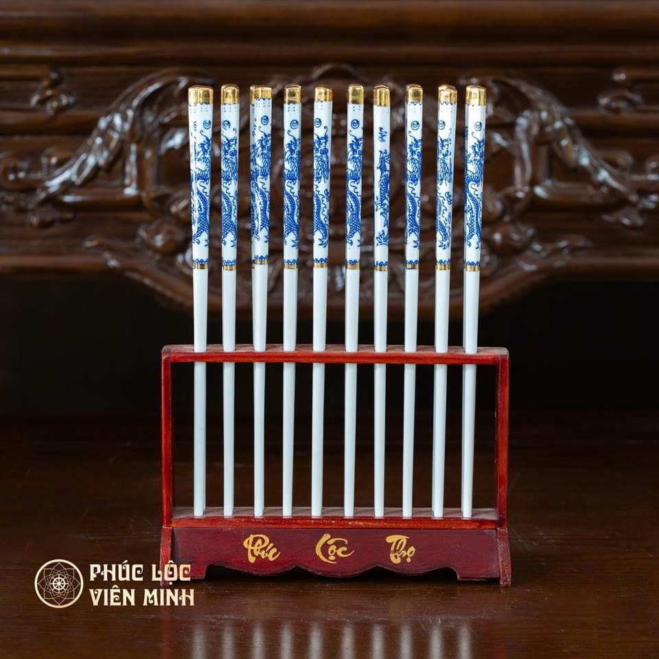 Bộ Đũa Sứ Men Lam Gốm Sứ Bát Tràng - Phúc Lộc Viên Minh