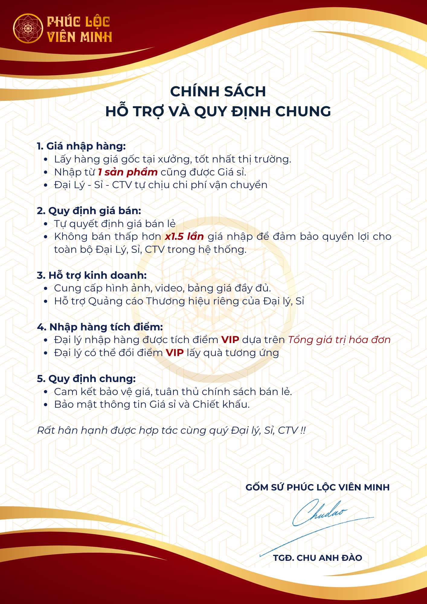 📝 Phúc Lộc Viên Minh hy vọng tất cả các đối tác sẽ hợp tác với tinh thần trách nhiệm, tuân thủ đầy đủ các quy định và chính sách, từ đó xây dựng một mạng lưới phân phối chuyên nghiệp và hiệu quả.