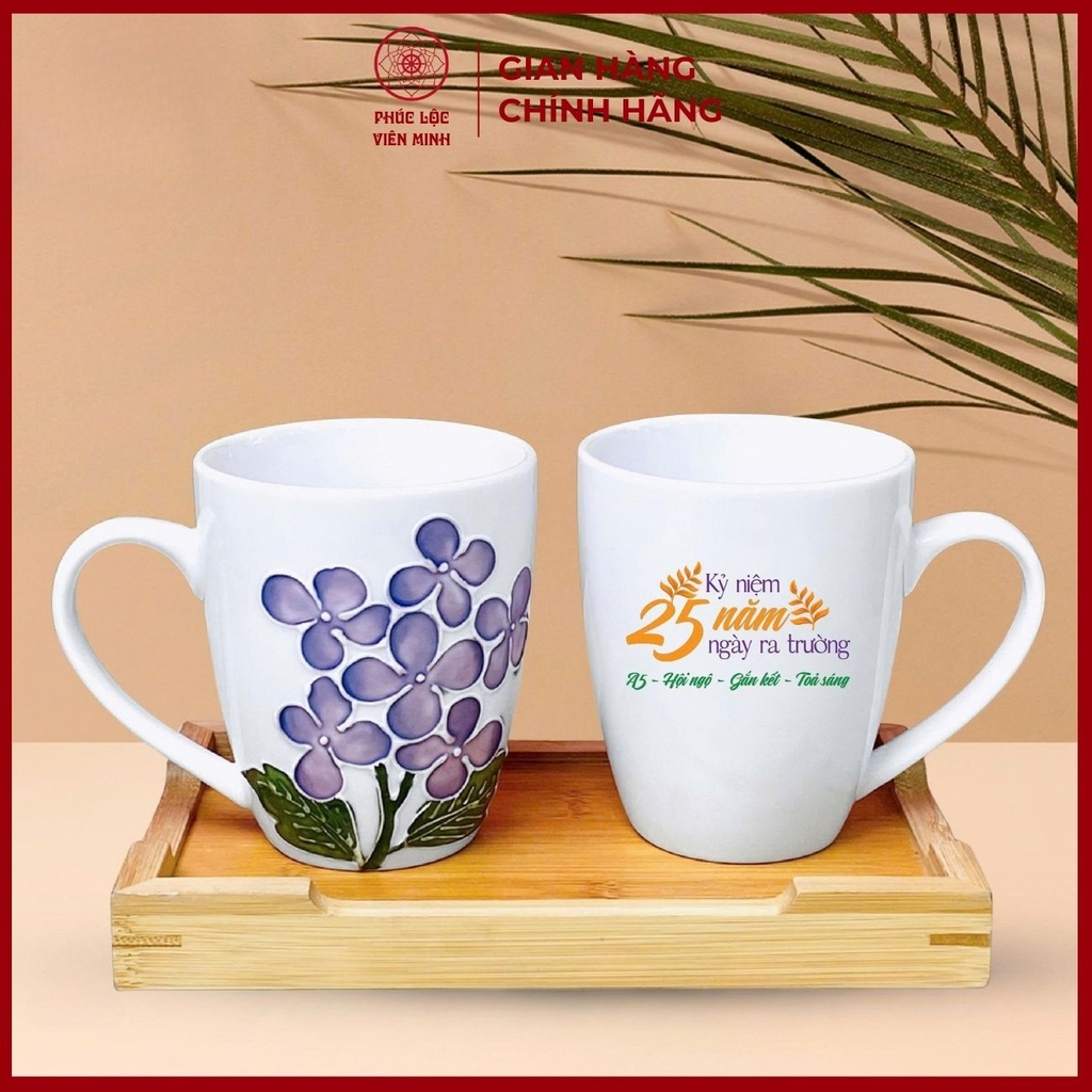 Cốc In Logo Cao Cấp Gốm Sứ Bát Tràng - Phúc Lộc Viên Minh - LD060
