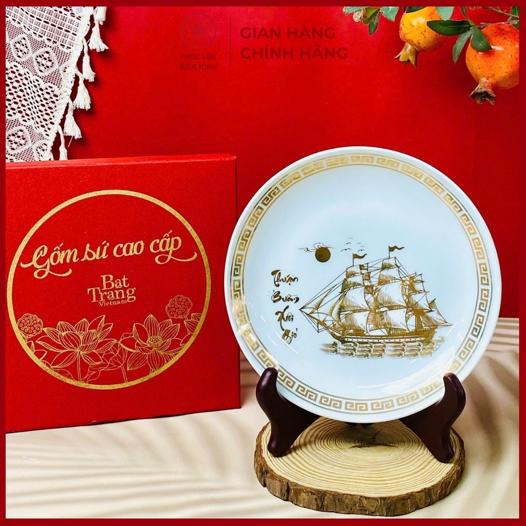 ✨Đĩa gốm sứ LD082 Bát Tràng men trắng dát vàng “Thuận Buồm Xuôi Gió”. Vật phẩm phong thủy may mắn, mang lại hanh thông, thịnh vượng và là món quà tặng sang trọng, ý nghĩa.