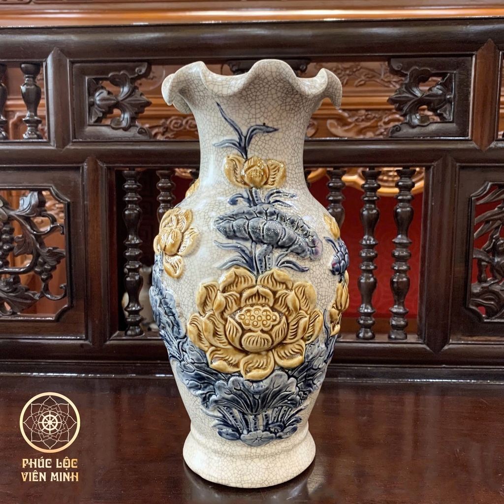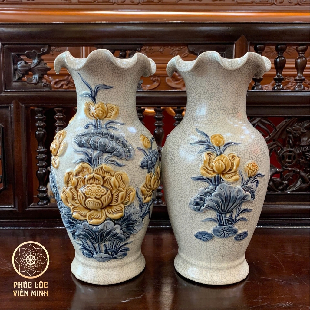 Đôi Lộc Bình Miệng Lượn Họa Tiết Sen Men Rạn Gốm Sứ Bát Tràng - Phúc Lộc Viên Minhbr>