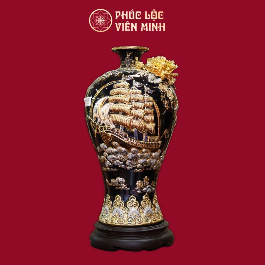Mai Bình Thuận Buồm Xuôi Gió Xanh Coban Vẽ Vàng Gốm Sứ Bát Tràng 45cm - Phúc Lộc Viên Minh