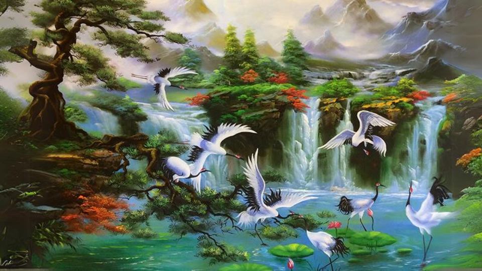 Hình ảnh chim Hạc sải cánh vút cao chính là biểu tượng cho tinh thần vươn lên, không ngừng hoàn thiện bản thân. Nó mang đến cho gia chủ nguồn năng lượng sống dồi dào, niềm tin vào tương lai tươi sáng và những điều tốt đẹp sắp đến.